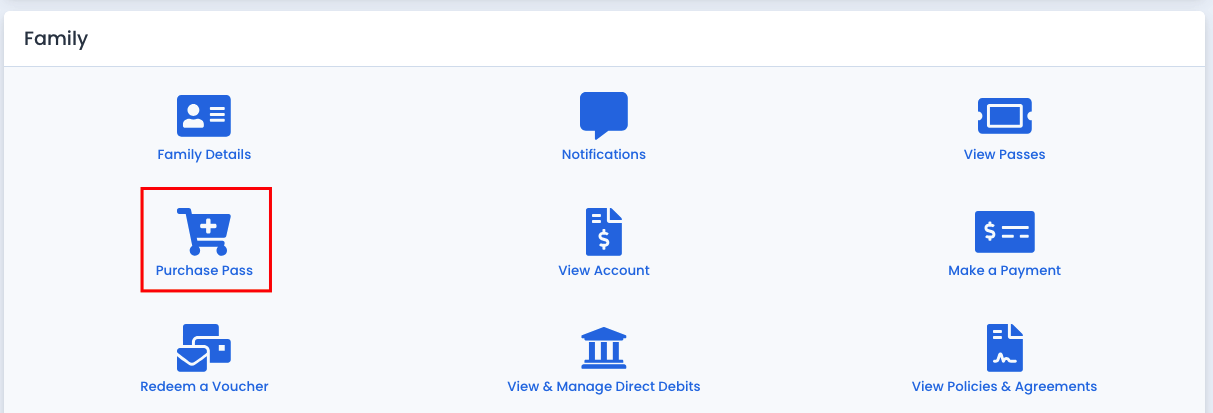 Families can browse all available pass types offered by the centre through an easy to navigate catalogue.