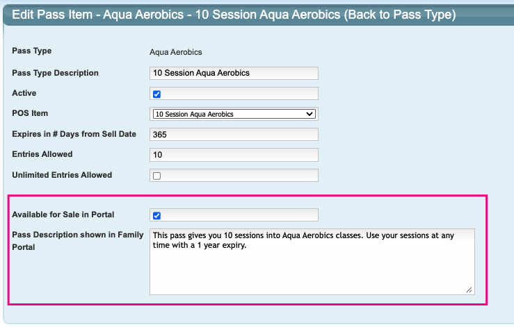- Only Active pass types that are configured for portal sales are displayed